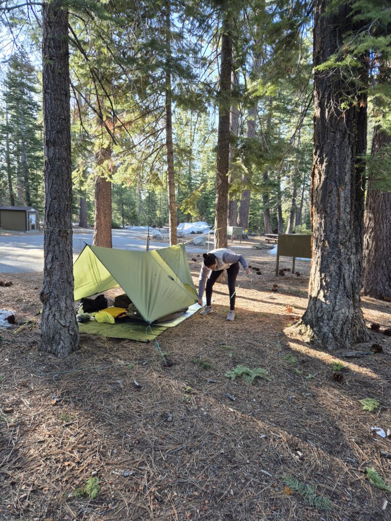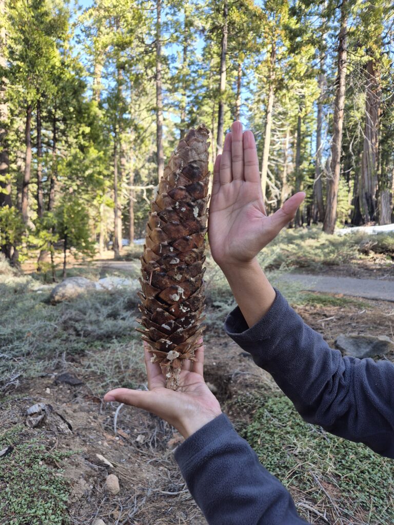 Quand on est enfin arrivés, le paysage… wow. Le lac entouré de montagnes, les arbres énormes, et cette odeur fraîche de pin dans l’air… Même les pommes de pin qui tombaient des arbres étaient géantes ! (j’exagère pas).