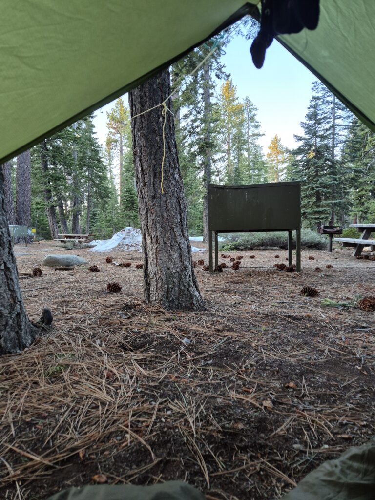 Ce soir-là, on a décidé de camper dans un campground pas loin du lac. Et là, mon cœur a commencé à battre plus vite, il y avait des boîtes spéciales pour mettre toute la nourriture et tout ce qui avait une odeur, pour pas attirer les ours et les autres animaux curieux. Moi, Alma, j’ai passé la nuit à écouter chaque bruit de feuilles comme si c’était un ours qui nous tournait autour… et le hurlement des coyotes … c’est un des trucs les plus flippants que j’ai jamais entendus. Le son était super fort.