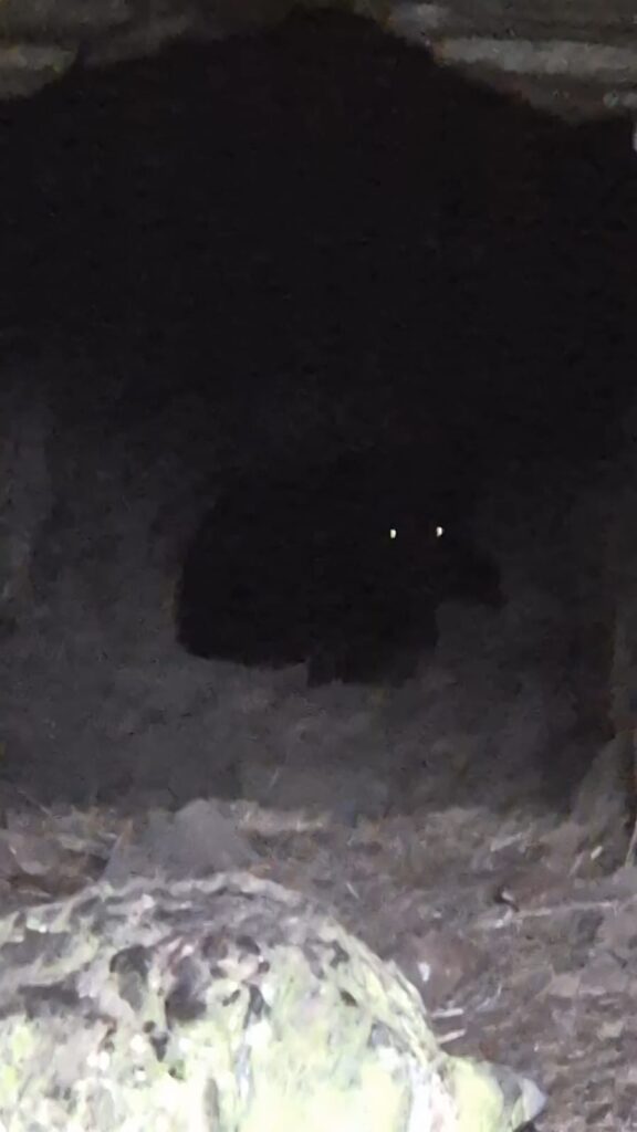 Normalement j’évite d’entrer dans un endroit ou je ne peux pas sortir facilement, c’est la première fois que je rentre dans une grotte, et c’est uniquement parcqu’elle est assez grande pour progresser accroupis sans difficulté. Je vois la forme sombre tout au fond et je me dit « ok je vais jusqu’à l’entrée de cet autre TUNNEL (…) et comme il a l’air étroit je m’arrêterai là ».