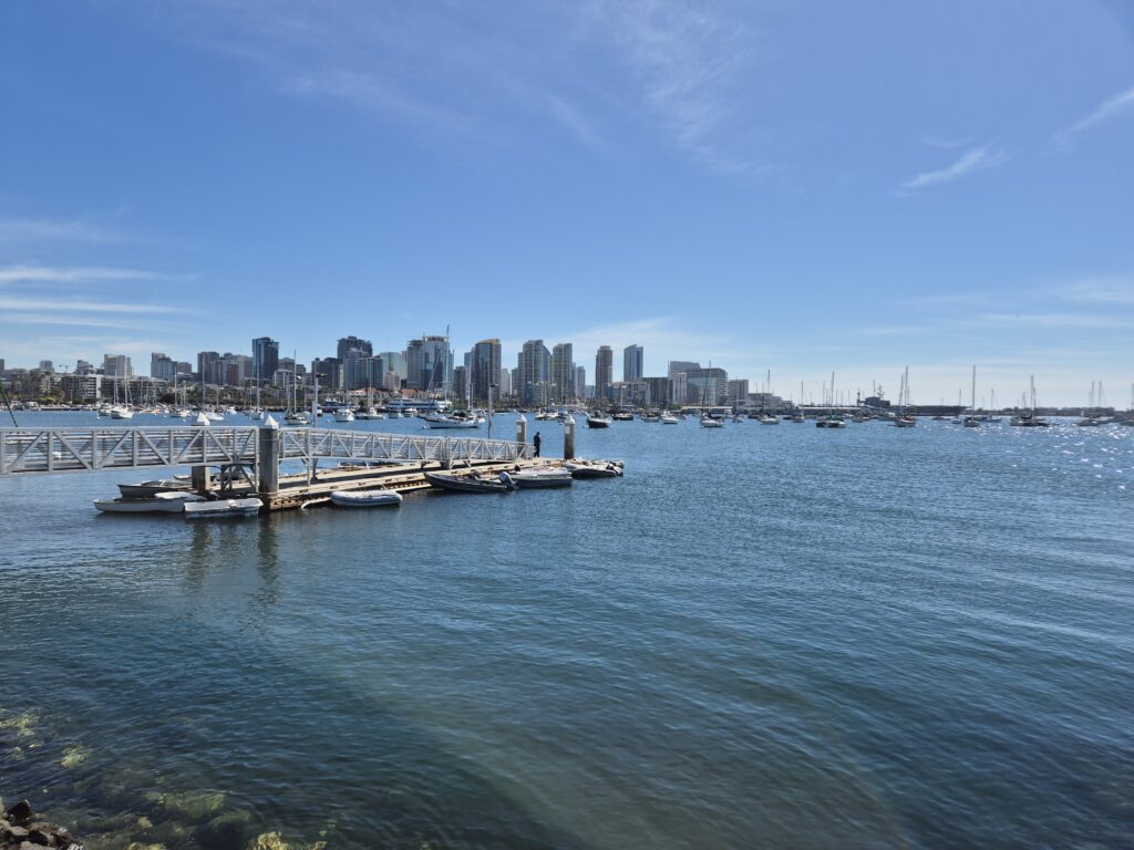Cette fois passer l’immigration n’est pas si simple. Par rapport à l’année dernière, ils ont « juste quelques questions en plus », alors on nous fait passer dans une salle annexe. Vu comment il parle à ceux avant nous on comprend vite qu’il faudra avoir les bonnes réponses aux questions. On passe un par un histoire de voir si nos versions concordent. En résumé c’est surtout le fait qu’on revienne si vite, pour si longtemps, et avec si peu d’argent qui les étonnent mais on passe bien tout les deux et on est accepté juste à temps pour ne pas rater le vol pour San Diego.