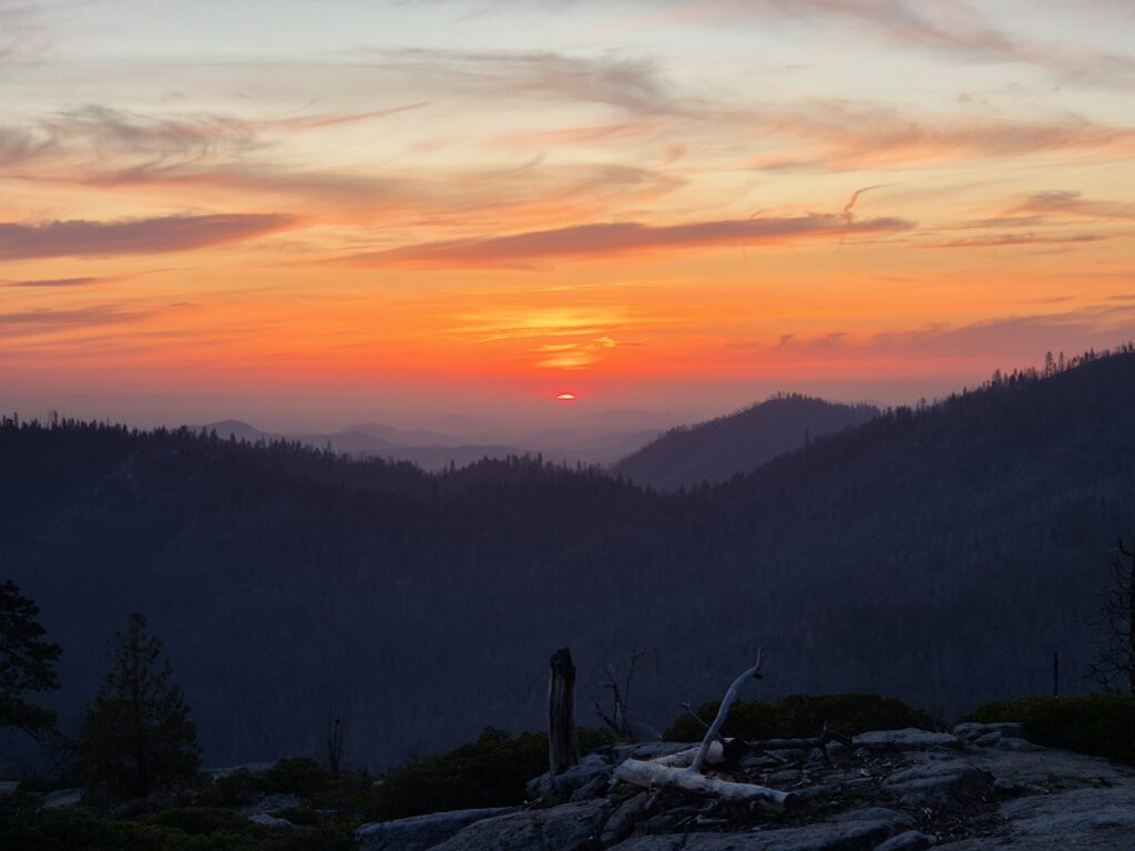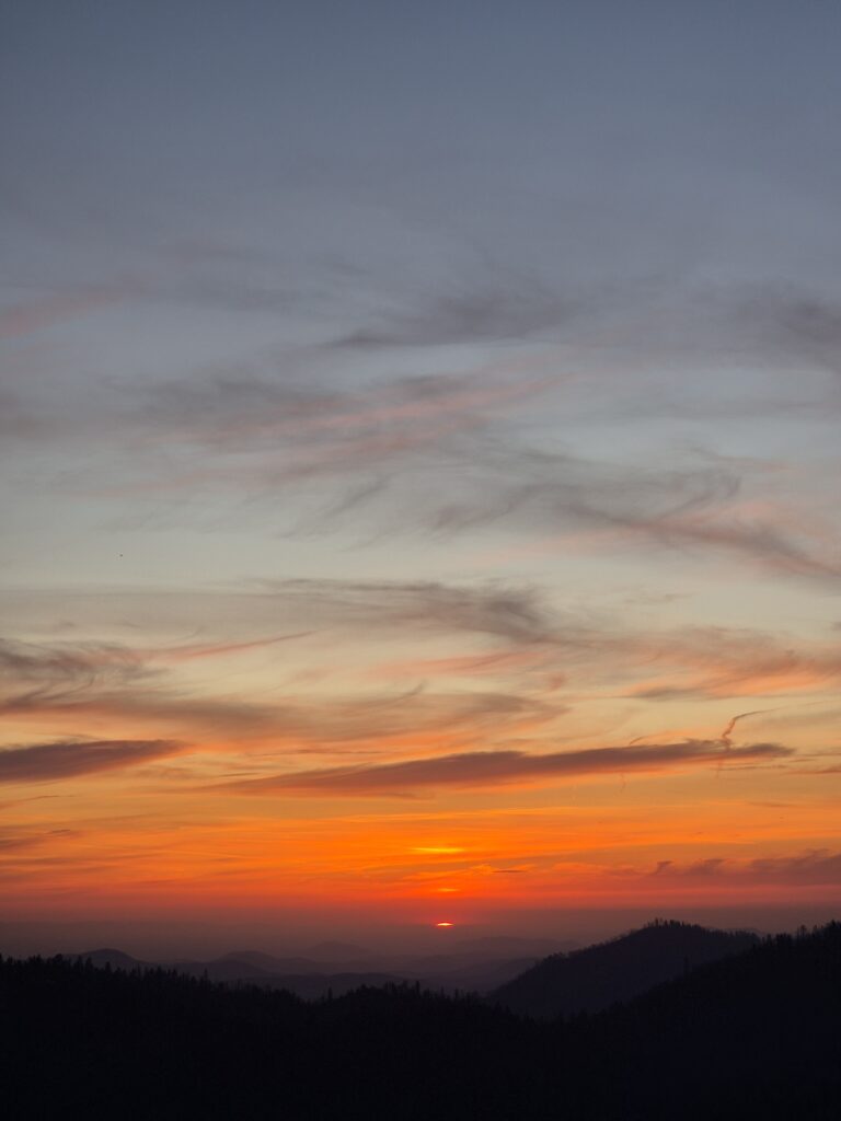 Le soir on est un peu nostalgique, ce n’est pas encore fini et pourtant on sent déjà la fin, cette nuit sera notre dernière nuit de camping aux États-Unis. En plus on a de la chance, mais ça rend le sentiment encore plus fort, car on trouve un endroit avec une vue magnifique et on a droit à un super couché de soleil en cadeau d’adieu.